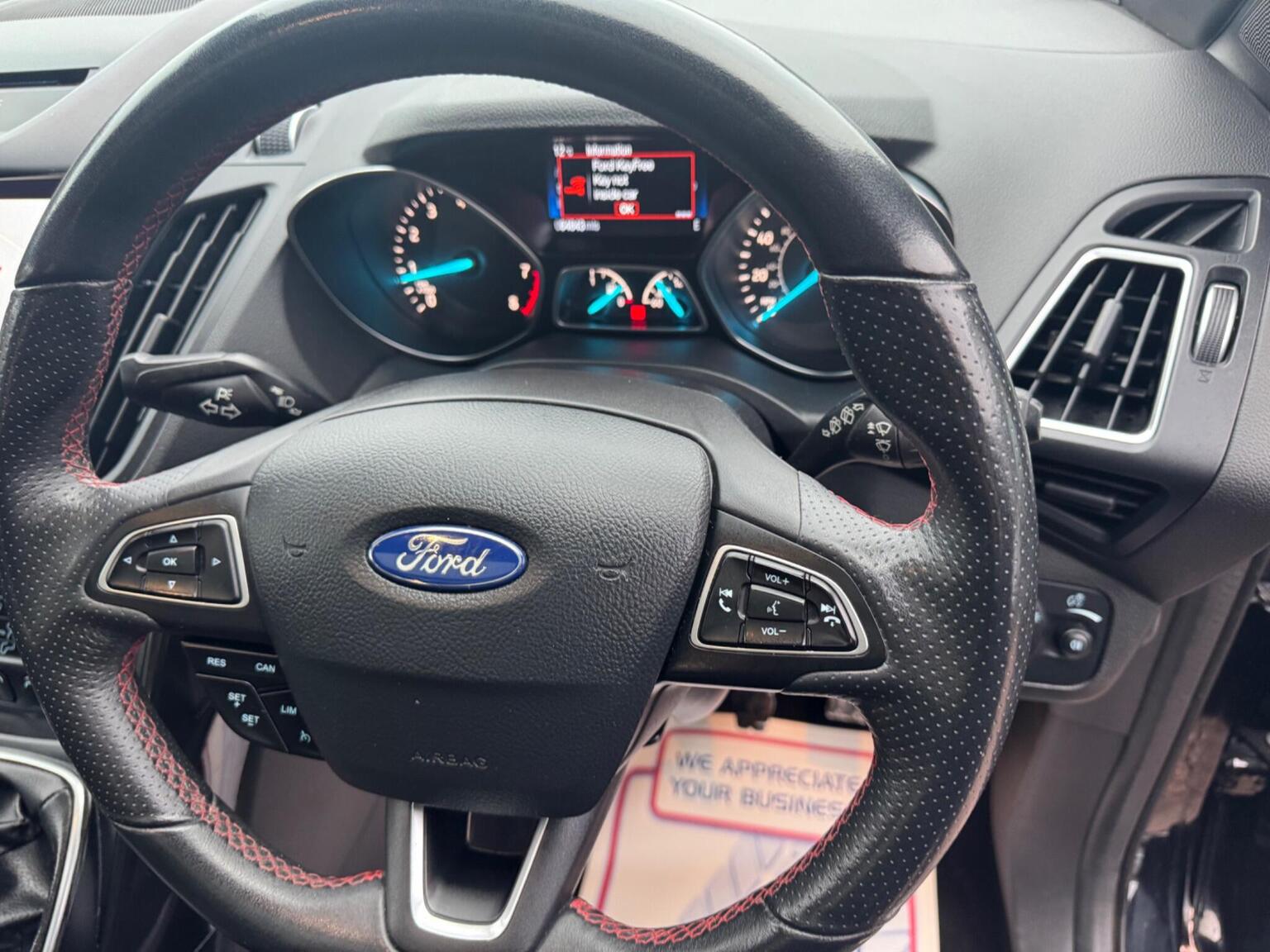 Steering Wheel - 3-Spoke Flat Bottom - Leather Trimmed with Red Stitching
